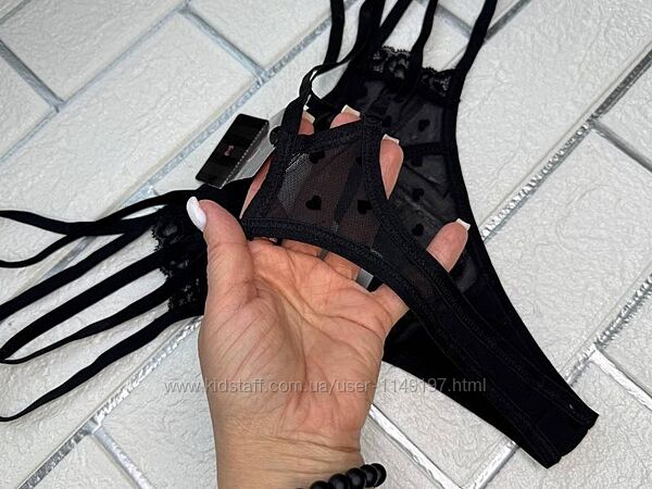 Подробное описание: Трусики жіночі чорні стрінги з сердечками hunkemoller євро розмір хл.