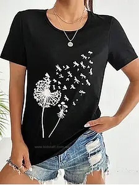 Жіноча футболка чорна, бавовна 100, S. M. L. XL. 2XL