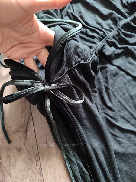 Это струящееся платье, выполненное из мягкой модальной ткани с небольшим количеством эластичности и отделанное бархатом, полностью открыто по бокам для дополнительного эффекта