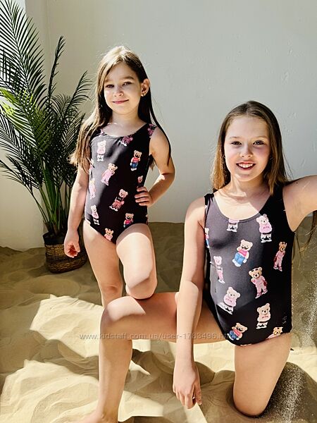 Дитячій стильний суцільний купальник з малюнком ведмедиків для дівчинки
