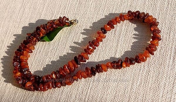 Подробное описание: Яскраве янтарне кольє із бурштину благородних коньячних вишневих відтінків
