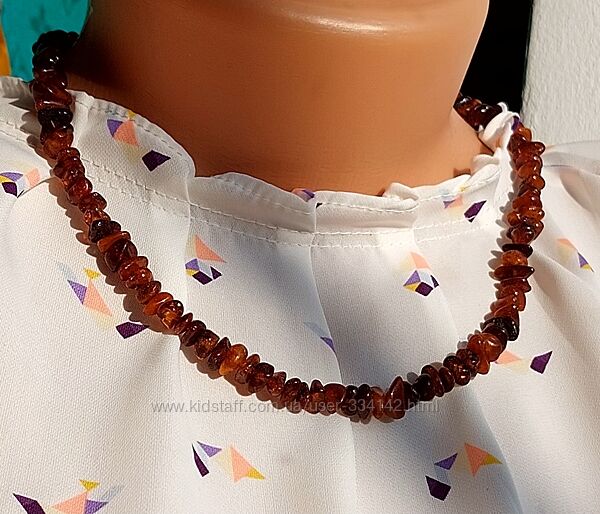 Це яскраве янтарне намисто виготовлене із натурального цільного бурштину. Гладенькі намистини глибоких коньячно-вишневих відтінків у формі гальки красиво переливаються на сонці!Тепло і позитивна енергетика сонячного каменю сприятливо впливає на організм людини, дозволяє позбавитися від багатьох недуг і виводить з депресії.