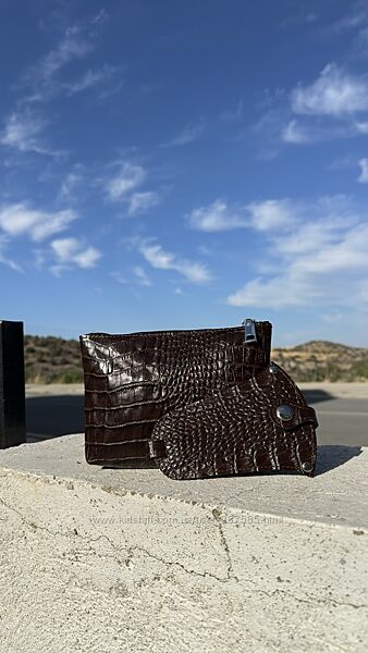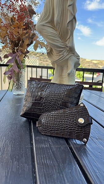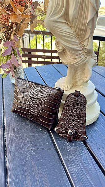 Красивий жіночний набір з важливих аксесуарів для кожної дівчини. Ідеальний подарунок для важливої Неї.Шкіряний набір складається з 2-х аксесуарів: клатч-косметички та ключниці у формі дзвіночка.