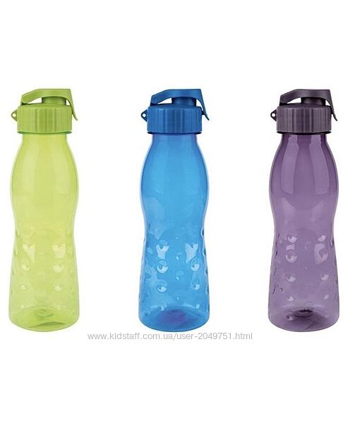 Пляшка для напоїв. Термостійкий до 60 °C. Кришка із захисним ковпачком. Матеріал: пластик. Не містить BPA: не містить бісфенол А. Не підходить для алкогольних напоїв, газованих напоїв та напоїв температурою понад 60 °С.В наявності: салатовий, голубий, фіолетовий