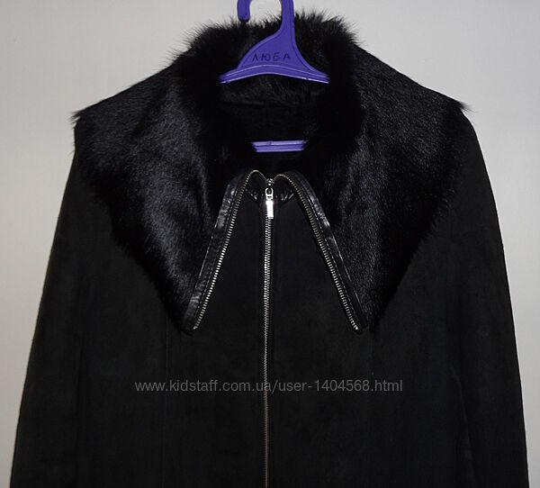 Лёгкая женская дублёнка, размер 46-48.Натуральная мягкая замша чёрного цвета. Середина - натуральный мех.