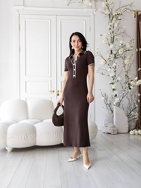 Подробное описание: Силуетне трикотажне плаття-поло максі довжини