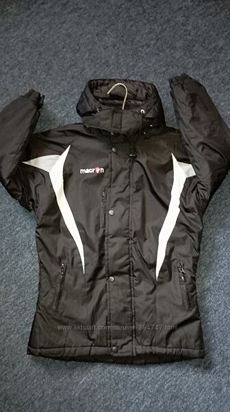 До Вашої уваги НОВА спортивна куртка фірми Macron. Компанія Італії спеціалізується на випуску спортивного одягу та взуття. Виконує замовлення для відомих світових футбольних, волейбольних ...команд. Куртка тепла, зима в ній не страшна, має тканину, яка не промокає та захистить від вітру. Спинка подовжена.Капюшон відстібується. Комірець флісовий. Дуже якісна вся фурнітура. Приблизно 10-12 років, та краще дивитись по замірах. Заміри: довжина спереду 66, по спинці 69. Рукав від горловини 62. ПО грудей 53 см. Ціна подібної куртки такої ж фірми 1500 грн. Ціна моєї куртки: 500 грн.