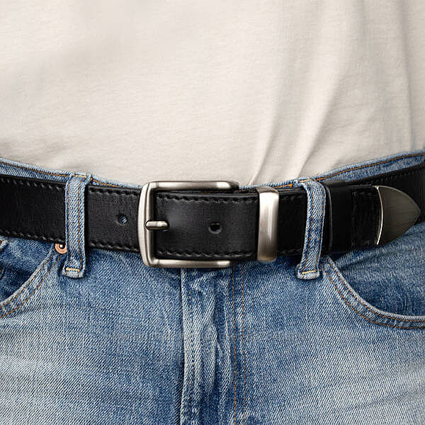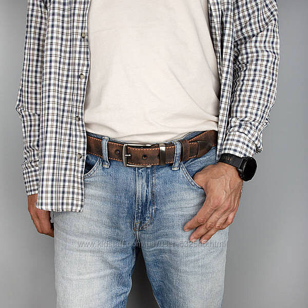 Ремінь виконаний із натуральної шкіри, має акуратну прошивку по всьому периметру. Ширина виробу становить 38 мм — це ідеальний варіант для джинсів або брюк у стилі casual.