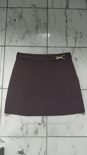 Нова, розмір М, колір правильний коричневий, гарний шоколад, склад 35% віскоза, інше поліестер, але за рахунок його спідниця гарно тримає форму.