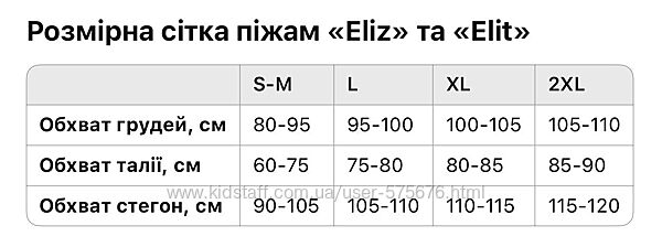 Розмірна сітка на фото.