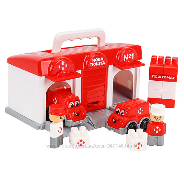 Гараж Технок 1867 "Нова Пошта" з 2 машинками та ручкою для переноскиВідділення "Нової Пошти" – майже як справжнє, тільки поміщається на килимку у вітальні.