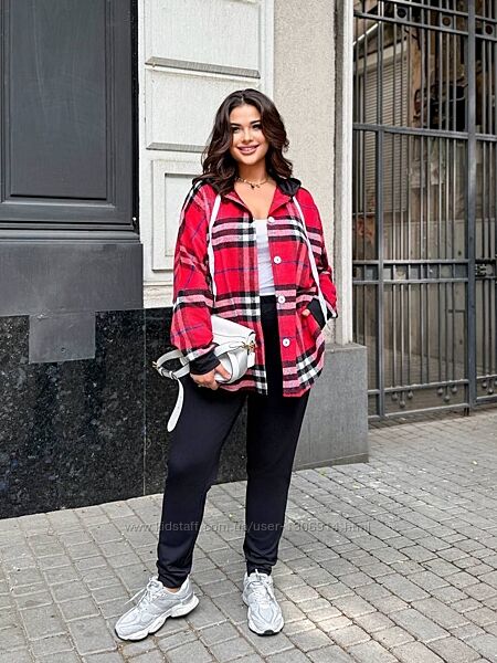 Стильний костюм двійка, сорочка з довгими рукавами, капюшоном та гудзиками спереду. Вона виконана з м´якої, теплої тканини і має трохи оверсайз крій. Штани облягають по фігурі, звужені донизу