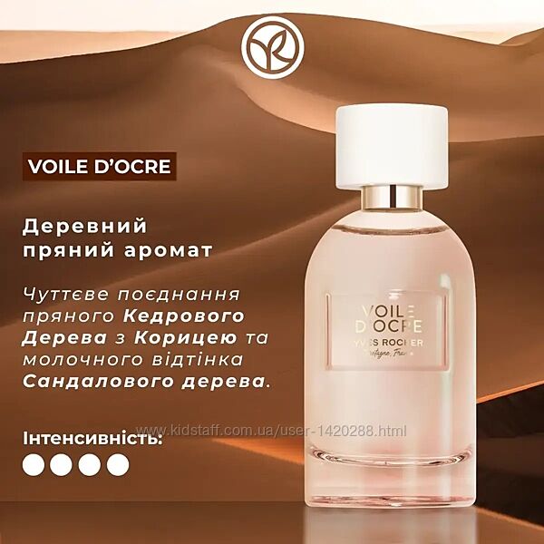 Парфумована вода Voile d´Ocre від Yves Rocher. Новий продукт від відомого бренду. Створений для справжніх поціновувачів якісної парфумерії.Золота вуаль 100 мл в слюді