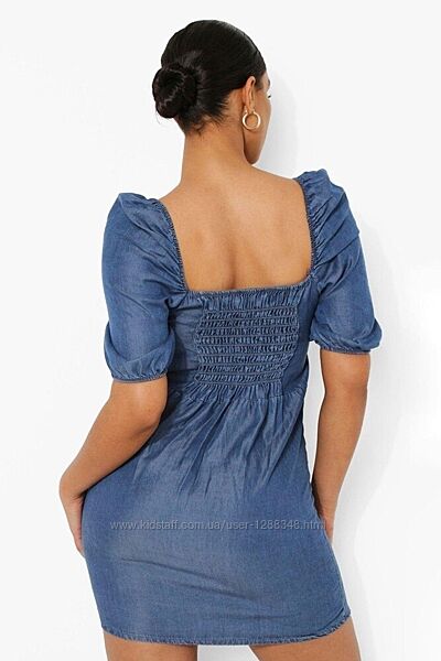 Подробное описание: Лиоцел летнее свободное мини платье джинсовое рукав фонарик 3/4 boohoo