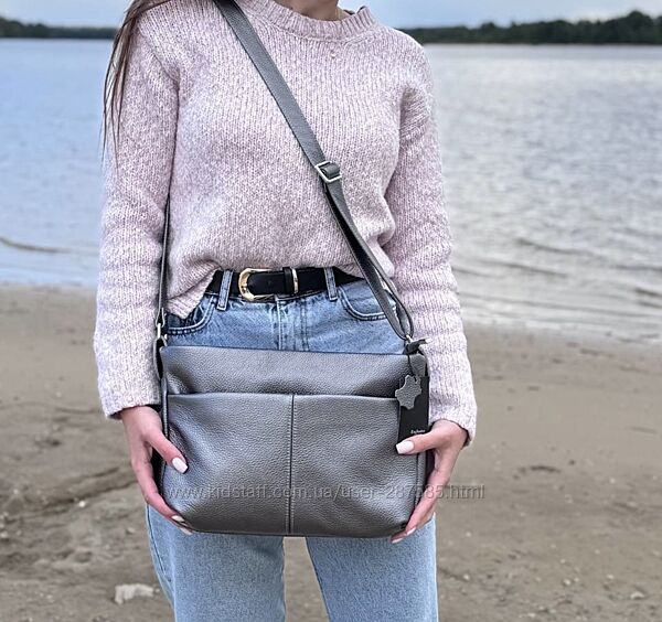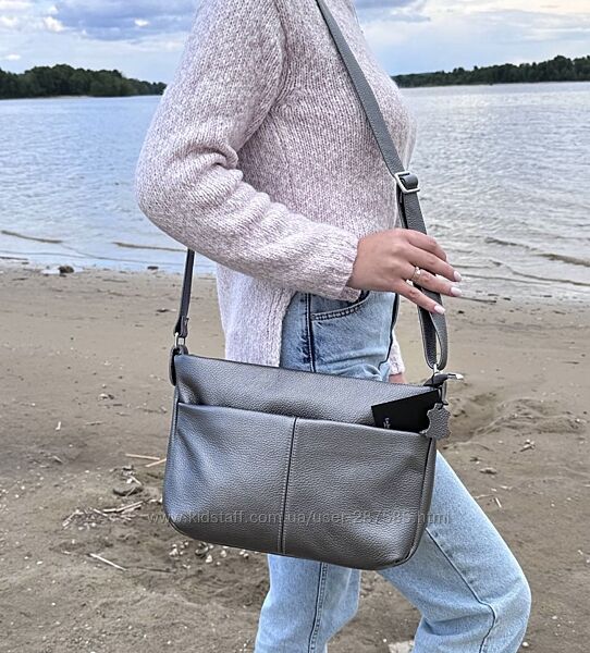 Сумочка середнього розміру з ручкою, що регулюється.Достатня кількість кишень робить сумку неймовірно практичною: кожній дрібниці тут знайдеться своє місце. Сумка зверху закривається на блискавку і має дві зручні кишені з лицьового та тильного боку.