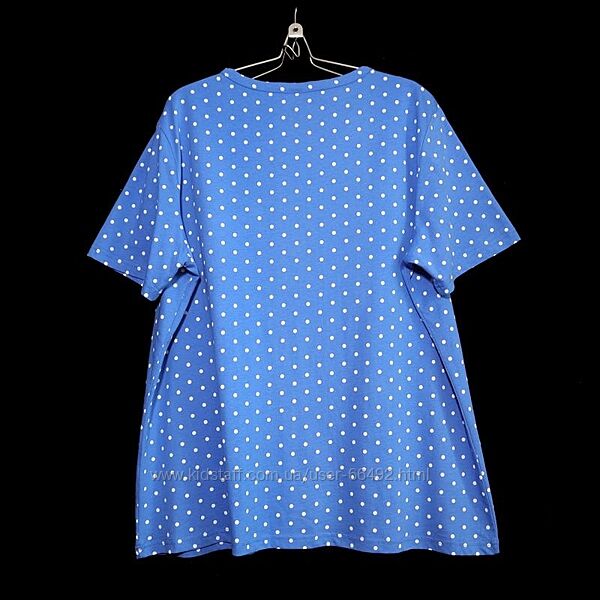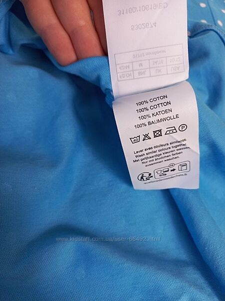 Футболка нова. Паперової бірки немає, але є паперова контролька. Розмір на фото, але маломірить, тому помилилась (придбала для себе). Бавовна 100%. Дуже красивий відтінок блакитного.