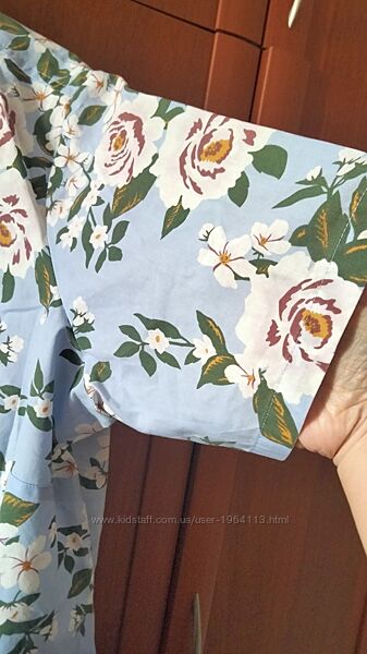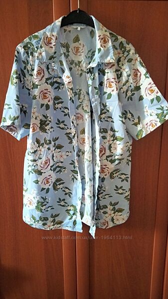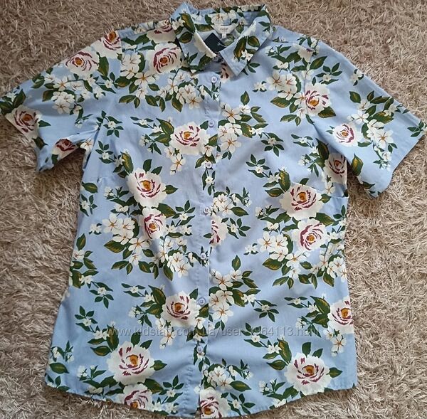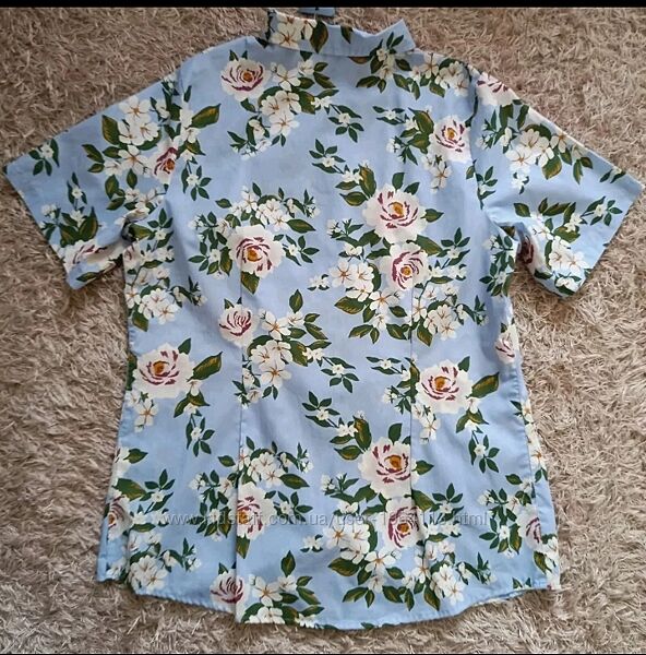 Яскрава літня блуза від Cotton Traders Виготовлена на 54% з бавовни, короткий рукав, відкладний ворот. Спереду на гудзиках. Ніжно блакитного кольору з квітковим принтом. Ідеальна не ношена. Розмір 2XL-3XL. Орієнтуйтесь по замірахН/о груди-57см