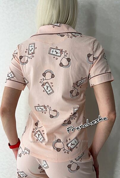 Піжама жіноча з шортами з колекції "ASSORTY" (арт.1694) від українського виробника Roksana можна придбати в нашому інтернет-магазині Francheska.Комплект для сну Roksana виконаний з м´якої бавовняної тканини персикового кольору з принтом, складається з сорочки та шортиків прямого крою. Сорочка з короткими рукавами та відкладним коміром, застібається на гудзики, , на грудях зліва прикрашена маленькою накладною кишенькою, шорти з м´якою гумкою в поясі. Піжама жіноча дуже красива та комфортна, ідеальна для сну та домашнього відпочинку, а також може бути корисним подарунком коханій та близькій людині.