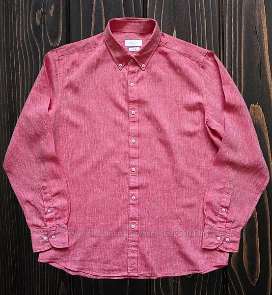 Оригинальная мужская льняная рубашка известного испанского бренда Massimo Dutti®. Указан размер XL, наш 50-52 размер (замеры см. ниже). Очень красивая, качественная, эксклюзивная. Модель Regular Fit с воротником Button-Down. Цвет красный. Низ слегка полукруглый. Материал - 100% чистый тонкий лён высочайшего качества. Cостояние новой, без следов носки, Сток. Отвечу на Ваши вопросы. Замеры: ширина в плечах 48,5см, полуобхват груди 61см, талии 58см, низа 61см, длина рукава по внешнему краю от плечевого шва 65,5см и 54см по внутреннему, длина по спинке 79см. Ворот 43-44см.