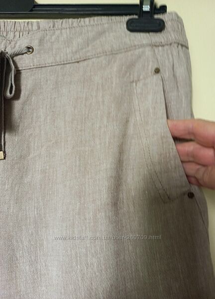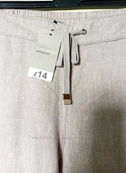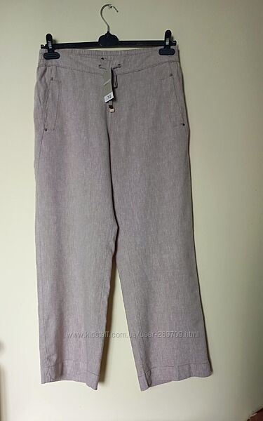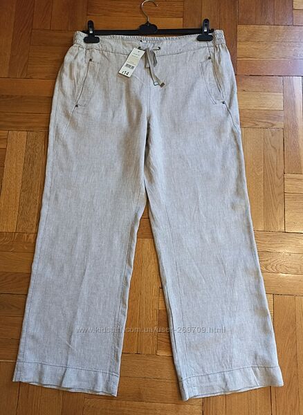 Чудові лляні брюки бежевого кольору , широкі, вільного крою, нові з етикеткою, розмір вказано 14, склад льон, віскоза Довжина 103см, внутрішній шов 75 см, ПОБ 60 см, ПОТ пояс 46 см , посадка 30 /43 см, штанина внизу 27 см
