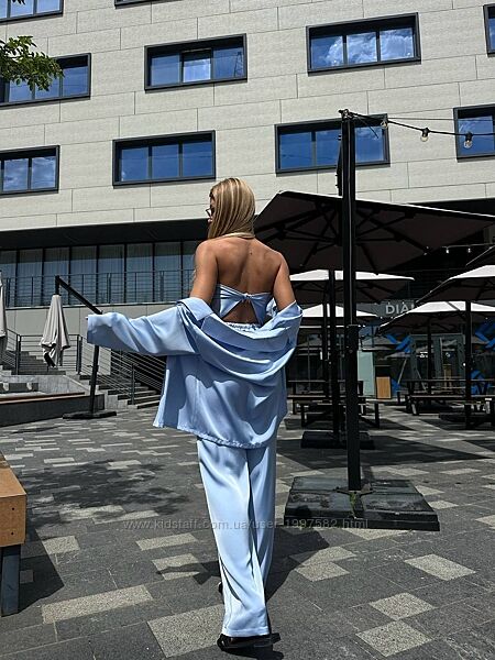 Інші брючні костюми нашого магазину Ви можете переглянути за цим посиланням: https://www.kidstaff.com.ua/user-anno-1997582/sect...Костюм трійка "Ванесса" блуза-жакет вільного фасону на ґудзиках; штани на гумці з шнурівкою, з кишенями; хустинка