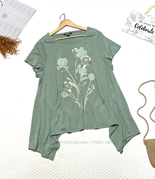 Футболка подовжена вільного крою з трикотажу від бренду Bonmarche 🌷 Розмір 22 / наш 56 💥 Дивіться по замірах . ✅Заміри: Пог 67 см , ширина внизу 115 см , довжина 73 см/ 85 см, рукав з плечем 41 см , рукава 21 см Стан нової речі.