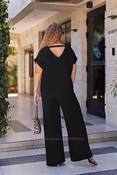 Подробное описание: р.50 до 60р. Стильний костюм вільного крою американський креп жатка