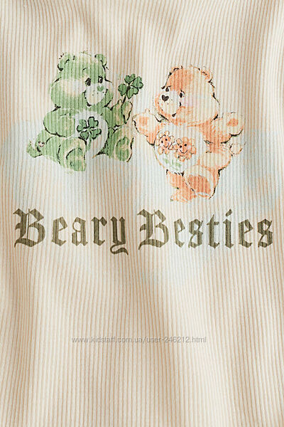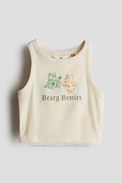 Бежева майка топ H&M із серії Дбайливі ведмедики ( Care bear).Прінт ведмедіков спереду, беж.