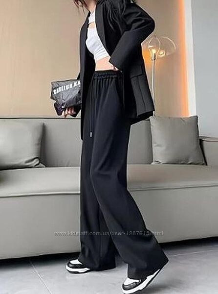 Чорні широкі джогери на резинці, брюки палаццо у спортивному стилі