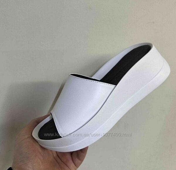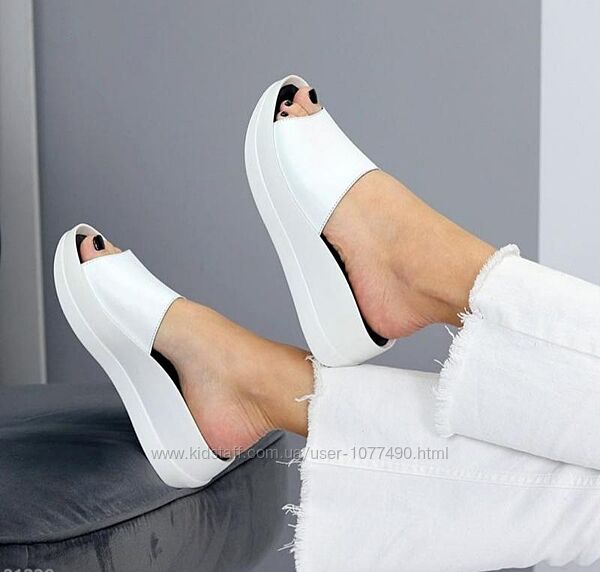 Шльопанці шкіряні білі на платформі , шлепки кожа