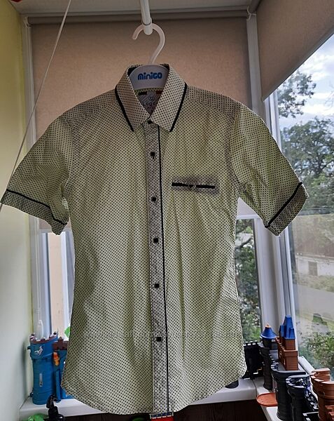 • Сорочка Waxmen Турція, нова. 110 розмір, вік 5-6 років. Якісна. Склад: 98% cotton, 2% elastan. Ціна 60 грн.• Молочно-біла сорочка з короткими рукавами Next, розмір 116, на вік 6 років. Дуже легка. Супер склад: 55% льон, 45% cotton. Гарно пасує першачку, коли повертається зі школи. Ціна 70 грн.