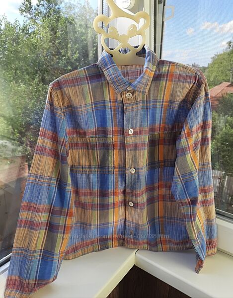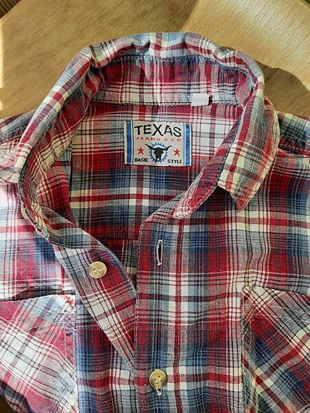 • Сорочка в клітинку і полоси Texas Jeans&Co, з довгими рукавами, розмір 116-122 (мені навіть здається трохи більше). Заміри: довжина 51 см, ПОГ 44,5 см, плечі 39 см, рукав 35,5 см. Ціна 50 грн.