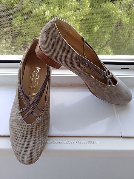Стильные кожаные туфли от итальянской марки Attica physio fit.Изготовлены из натуральной кожи с напылением,цвет тауп, внутри мягкая натуральная кожа.Размкр 39 1/2, длина стельки 26см.