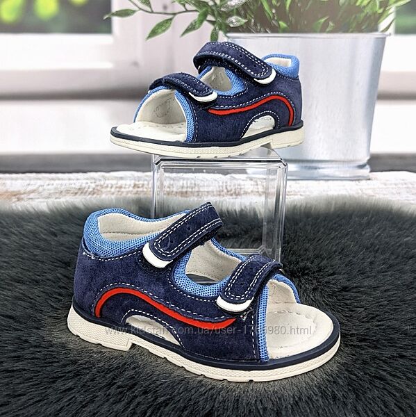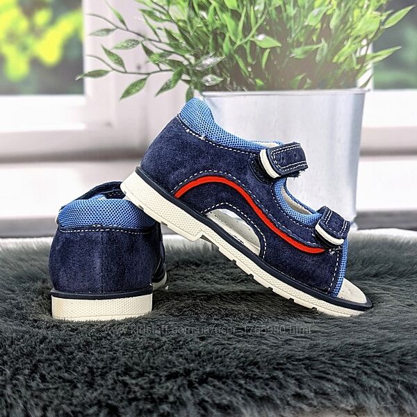 Босоножки, сандалии, для мальчика с закрытой пяткой.Верх - натуральная замша, подкладка - натуральная кожаСтелька - кожаная с супинаторомПодошва - ПВХ. Высота подошвы 1-1,5 смНожка фиксируется с помощью 2 липучекЗа счет высокой пятки и липучек, ножка ребенка надежно фиксируется в обуви.
