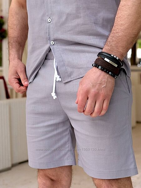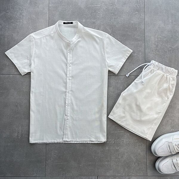 Лляний чоловічий літній комплект руБашка та шорти Рубашка шорти із льону