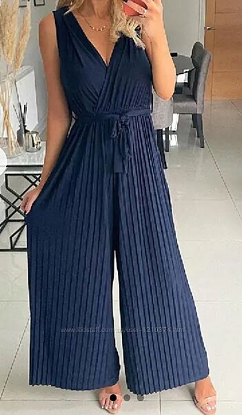комбінезон плісірований, дуже зручний та нарядний, легкий в носке, в одяганні.Приємний на дотик. Создасть чудовий образ,зробить гармонісчним сілуєт,підійде на дівчину зрістом до 168 см.