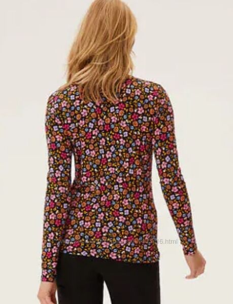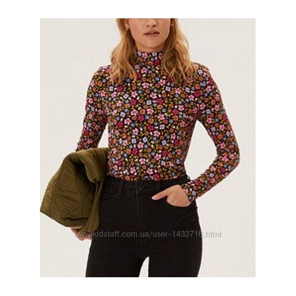 M&S Cotton Rich Floral Print High-Neck TopПридайте изюминку своим вещам первой необходимости с помощью этой водолазки с принтом от Marks&Spencer из хлопка. Прилегающий крой, подчеркивающий фигуру, с воротником стойкой. Добавлена эластичность для дополнительного комфорта. Технология StayNew™ гарантирует, что цвета сохранятся дольше. Коллекция M&S: удобные предметы гардероба, сочетающие классический и современный стили.