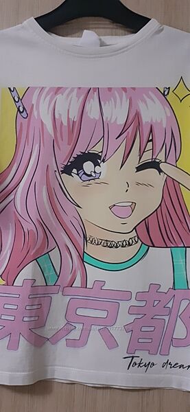 Фото 5-7. Футболка аніме Zara, розмір 11/12 років, але підходить на розмір 13/14 років.
