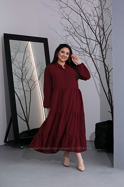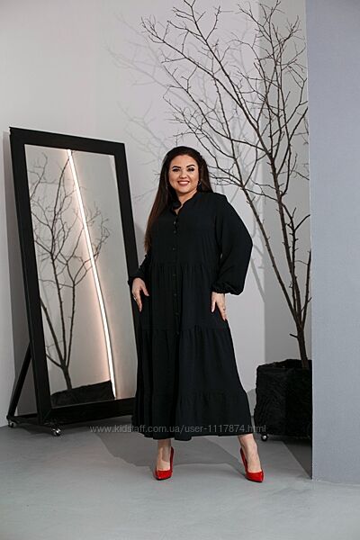 Подробное описание: 50-58р Жіноча крепова довга сукня з рюшами 1058