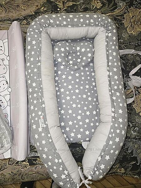Лот кокон, місце для дитини, пеленатор, в подарунок слінг шарф і бортики на