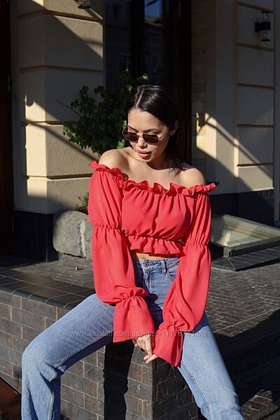 Акція 42-44р Коротка шифонова блуза топ з довгими рукавами 625