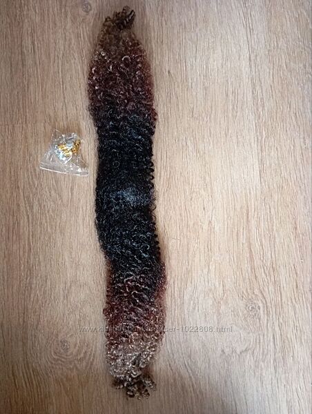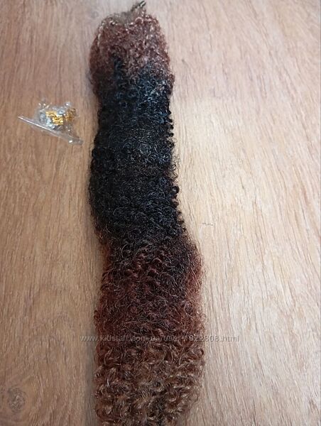 Продам синтетические кудрявые волосы для наращивания, искусственные афрокосички. Цвет - от черного по центру до более светлого на концах. Длина 18 дюймов (около 45 см).