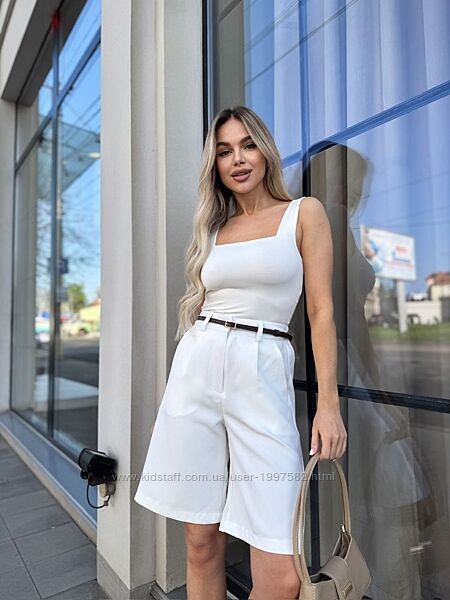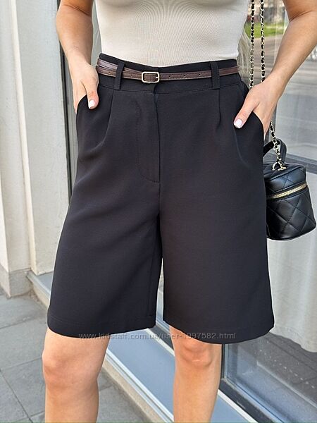 Шорти-бермуди мають елегантний крій з високою посадкою та вільними штанинами, що створює ефектний та модний силует. Їхня довжина трохи вище коліна ідеально підходить для створення різних образів – від повсякденного до ділового.