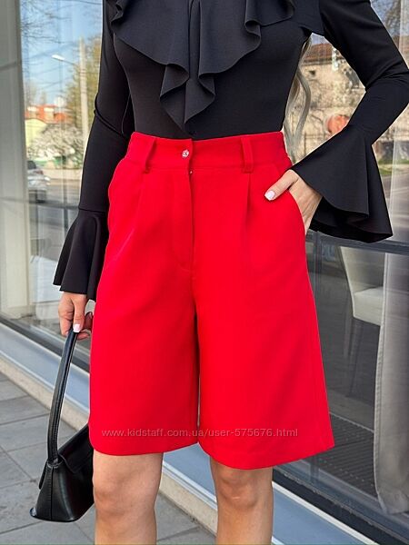 Бермуди представлені у шести трендових кольорах. Вони легко комбінуються як із вільними футболками, так і зі строгими блузками та сорочками.
