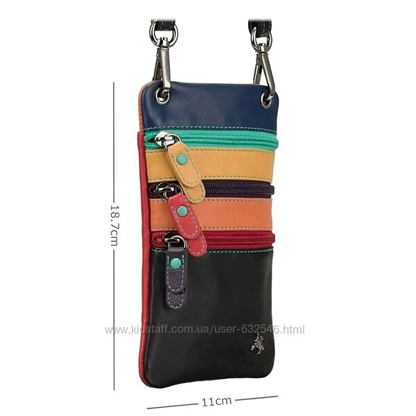Матеріал: натуральна шкіра Розміри (см): 11 x 18.7 x 2 Підкладка: Текстиль Колір: мультиколор Кількість відділень: 3 Кишеня для телефону: є Застібка: блискавка Ремінь: є Упаковка: прозора поліетиленова упаковка Країна: Великобританія