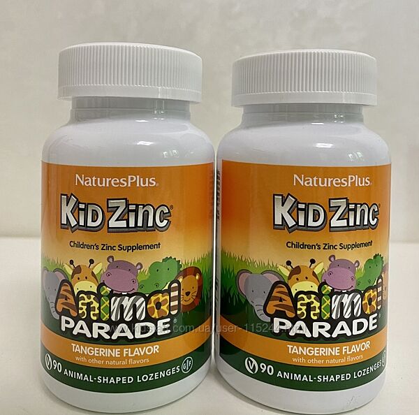NaturesPlus, Source of Life, Animal Parade, Kid Zinc, пастилки для дітей із цинком, натуральний смак мандарина, 90 пастилок у формі тваринВідправлю в день замовлення.