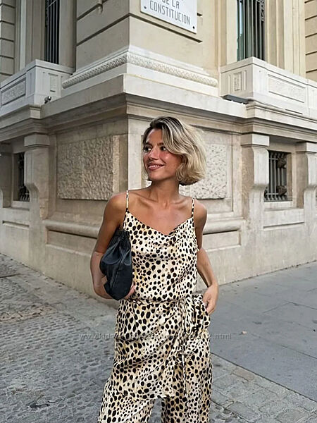 Подробное описание: Атласний леопардовий костюм zara l/xl