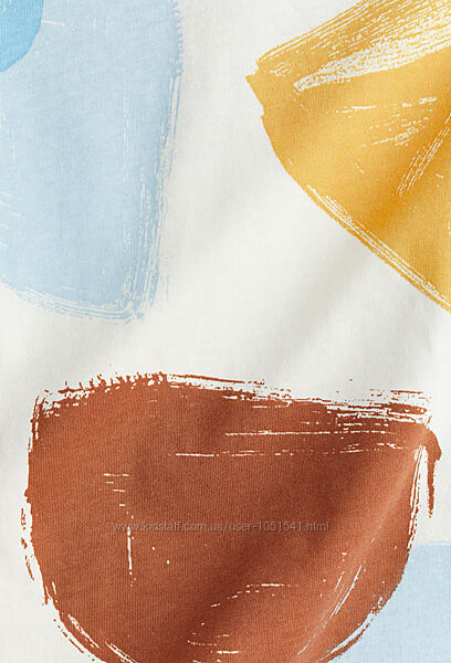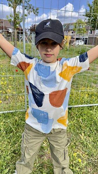 Футболка трикотажна , ,білого кольору з принтом кольорових клякс від H&MРІСТ от 110-116 ( спина 42 ПОГ-32 см ) 122-128 ( спина-46 ПОГ -35 см ) 134-140 ( спина-52 ПОГ -37 см ) СКЛАД - 100% бавовна