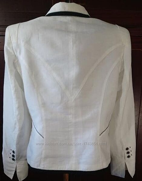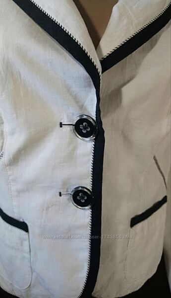 Жакет р.46 бренд Taifun –жіночий піджак на підкладці, білий, оздоблений чорною стрічкою. Два кармани спереду.