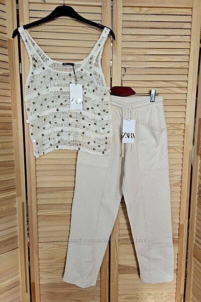Трикотажні штани Zara.Трикотажні штани, колір типу під льон.